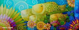 Valdir Ribas Rodrigues - художник из Сан-Пауло, Бразилия. У этого удивительного бразильского мастера очень своеобразная живопись. По стилистике это ближе к сюрреализму. Оригинальная гамма цветовых оттенков, тёплых пастельных, но достаточно ярких, переходящая из картины в картину, необычная форма предметов, насыщенность пространства картин цветами и завитушками. На многих картинах Родригеса изображены рыбы, животные и птицы.